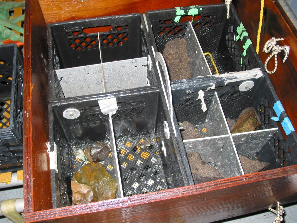 And these missions were all successful. While I took much time away from academia following my undergraduate work, I have since searched for published findings from this cruise… I have not found much beyond a few conference abstracts, but I will update if I succeed. Anyway, here’s JASON II and his rock trays.